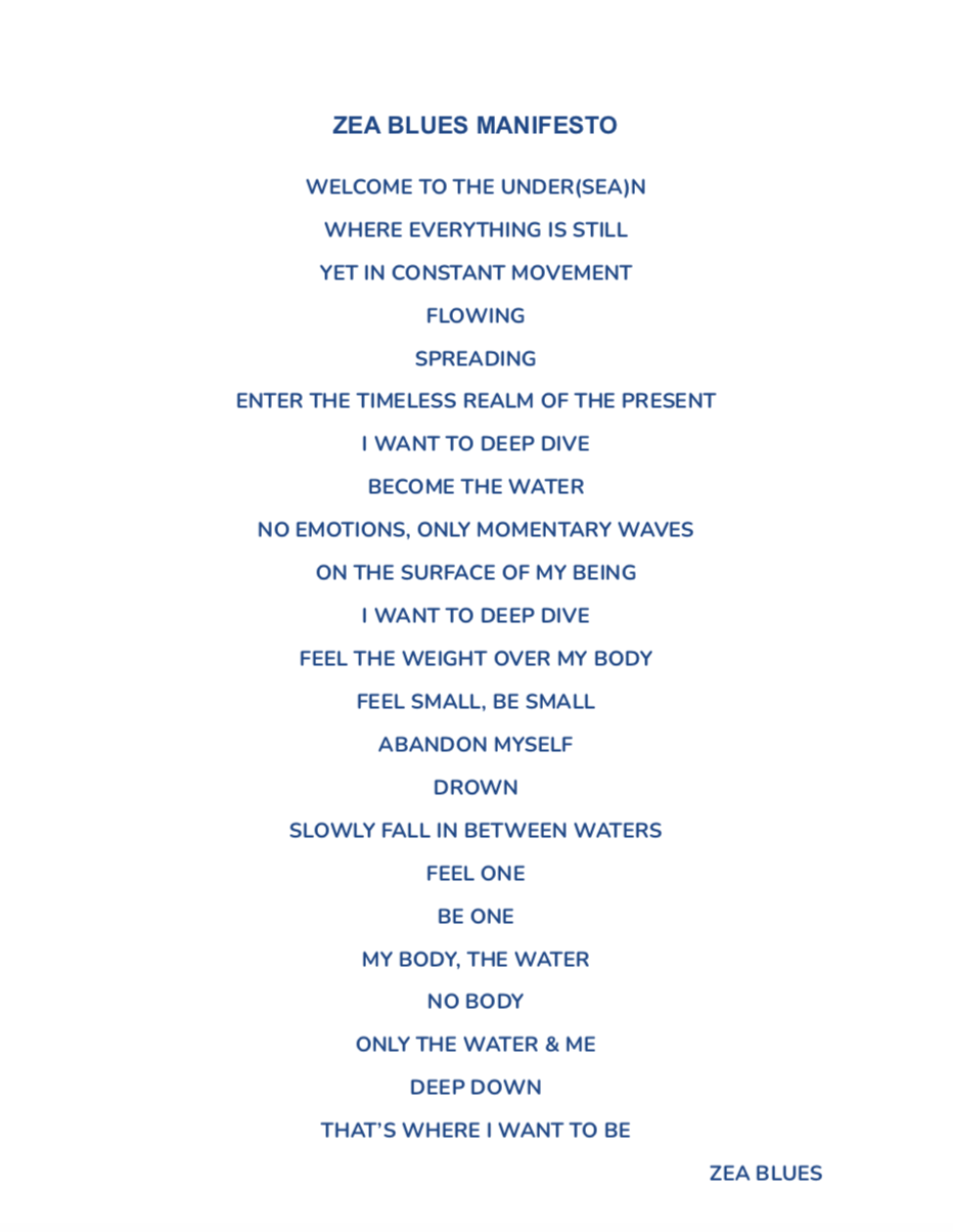 ZEA BLUES is the expression of my imaginary travel to the undersea, a journey to heal my blues and search for inner peace.